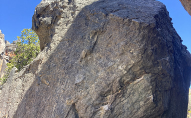 Park to the Pass parking. Take the sandy road, walk it for about 800 meters, take a turn at the cairns to the right. Walk this path for 400 meters, take a path to the left (up to the fortress). Walk uphill along a cairned path for another 500 meters and you'll arrive to the Fortress Boulder.