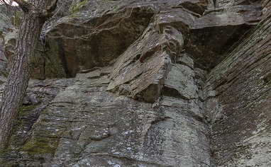 From the car park follow the road towards Alingsås for about 1 km and you should spot the crag a bit up into the forest on the left side of the road.