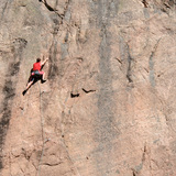The cliff directs to south-west and has very open front so it dries incredibly fast after rain. It can also get quite hot during sunny summer days. The rock is coarse, finger tearing granit. Be aware that despite the fact that most routes are bolted, some routes miss anchors. Fixing of a top rope or belaying point to tree is the only option in some cases.