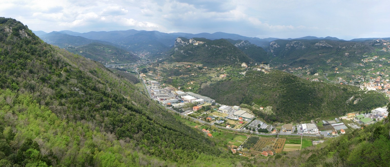 Rocca di Perti (right above the autostrada bridge) from south (Rocce dell'Orera)