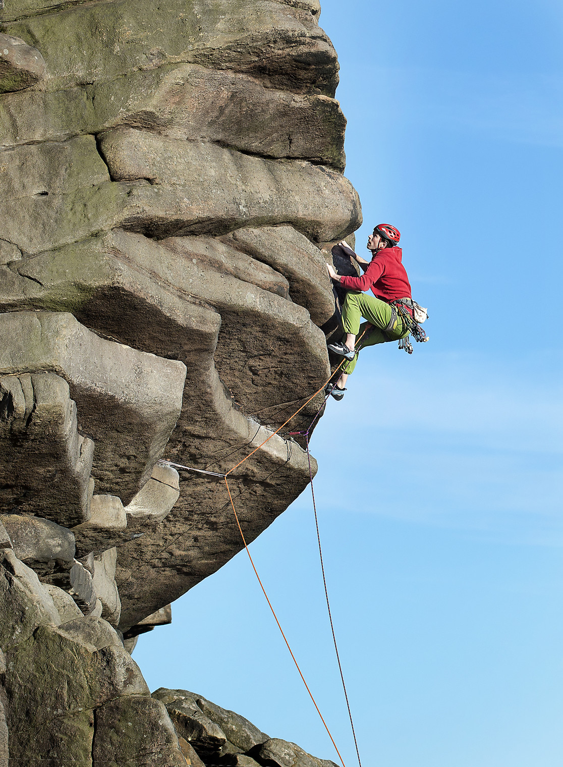 James Turnbull climbing 'Flying Buttress Direct' (6a / E1 5b), Flying Buttress Area.