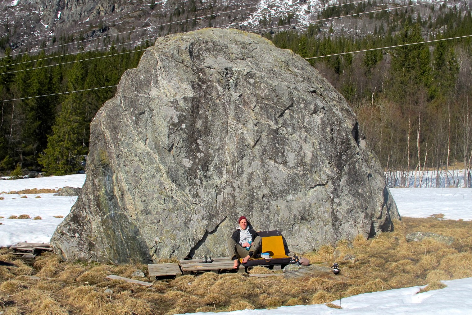 Martin Andersson enjoying the sun in front of Steinen, Ulsåk.