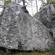 Be aware that the "nose" formation on the arete is a big hollow and wobbly flake, and it feels like you could break off some unknown sized bit if you pull hard on it. I'm not sure where the original line was climbed, but I held to the left side to avoid the flake, even tho it looks and feels more natural for me to go on to in a compression style climb up the spine.