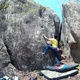 Fun slopey lip traverse to a big reach to secure the mantle.