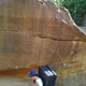 Hard start on overhang, then easy climbing