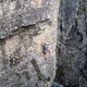 A good start with interesting rock features, then easy climbing to the belay. Above that I could only see one bolt going up and right so I came down from there