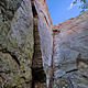 Otrolig tur på brant, exponerad gyllene sandsten. 11rl 290m. Fem svårare trestjärniga pitcher. Underhållande att toppa ut rakt på platån med ett gräsrökande förälskat par som jag skrämde upp när jag kom över kanten.