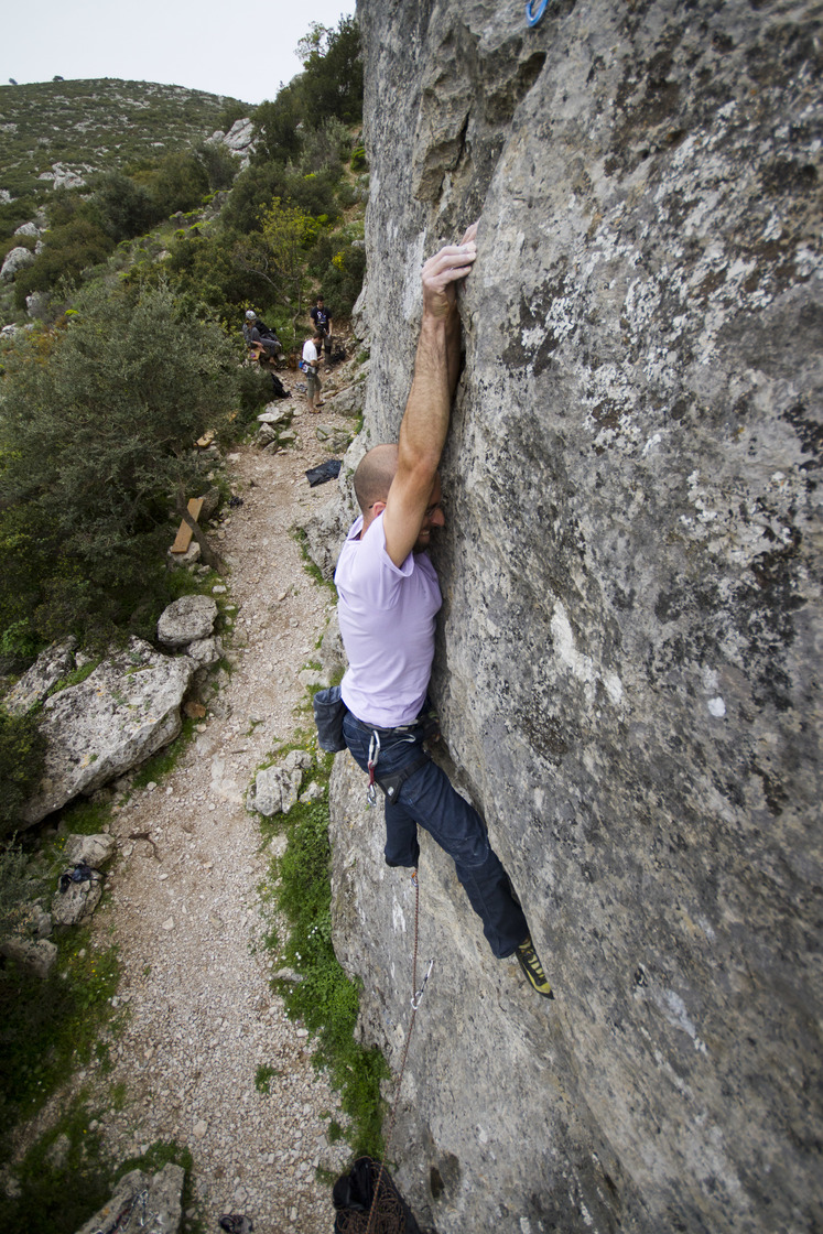 Location-wise, the crag is situated above the popular tavernas of Fyli, which can get noisy on weekends, but otherwise the views are open and the north facing orientation make the place a good choice for warm days.