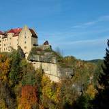 At the crags around the castle you can climb all year round at any weather. The south facing routes underneath the castle are covered by a big roof and stay dry forever. As long as there is no condensation of course.