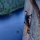 One of the best boulder problems in the area. Starts on the edge and finishes up the slabby features ontop. FA. Kjartan Haaland