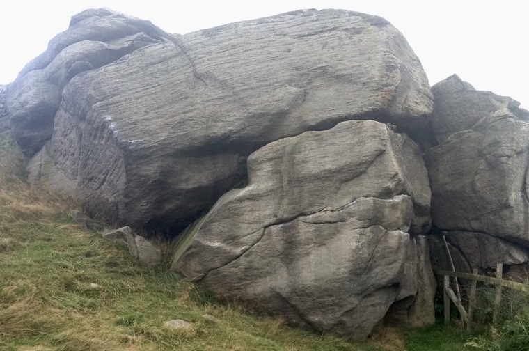 The tricky rounded arete requires a long reach to the break and commitment on the slab above.