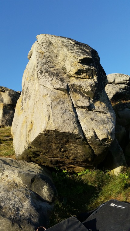 Climb the boulders leftward leaning ledge from the right. CD B16 P1.