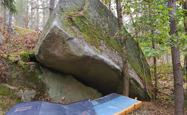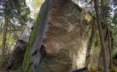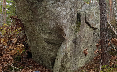 🚶 From the parking, cross the paved road and follow the old tractor tracks north/north-west. About 100 meters after you passed the old clearing for powerlines the boulders are on your right.