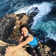 2) Right hand middle and fourth finger jam into handhold.
