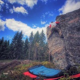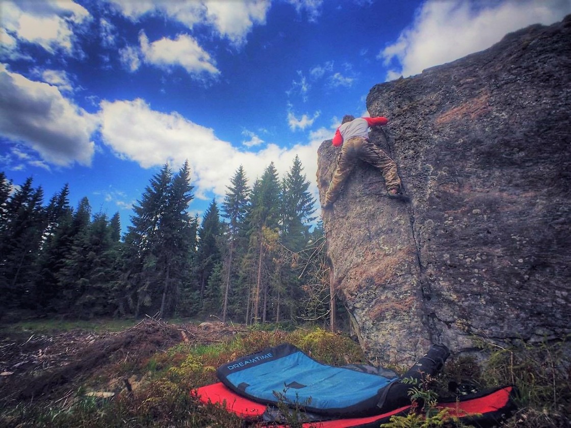 Ämmänpää -boulder is a big block and almost every line is 5-6 meters high. Ämmänpää dries quickly nowadays because most of the trees have been cut off around it. Being on a clear cutting,