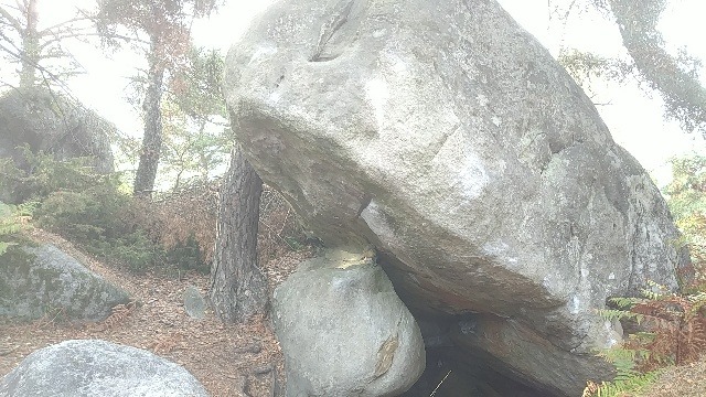 Start in underclings in center of overhang, climb directly through overhang and finish Furtif Haut.