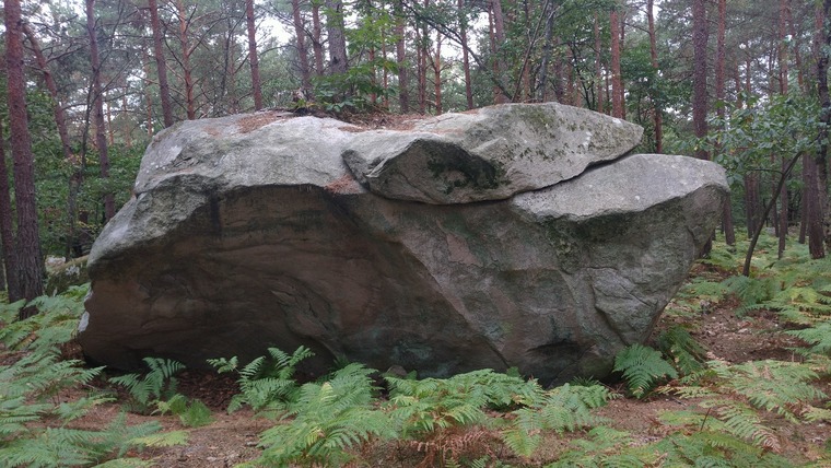 Sit start left, traverse right around 2 corners and topout on the backside of the boulder just after a crack (about 2m right of last corner).