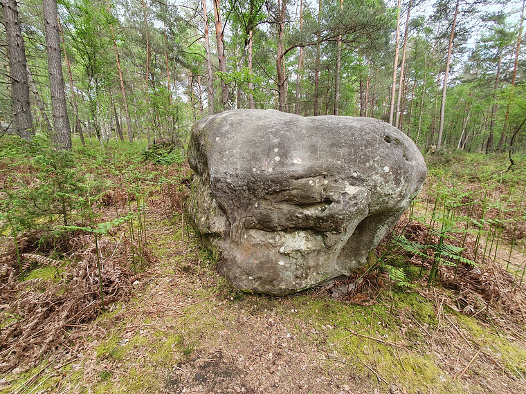 Orange 1. First one of the orange AD circuit of Apremont Désert. This one dries quite fast and goes around close to the blue circuit. It's 1-35 long and has a few variations if one wants. Follow the boulders named "AD".