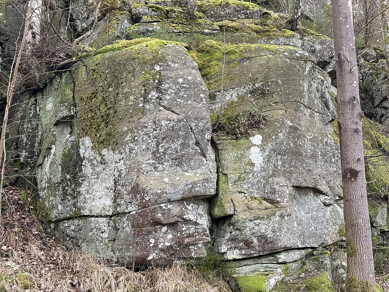 Väldigt oklar linje. Startade enligt topon klättrade sedan där jag tyckte att det fanns grepp. Kändes inte som 6A+. Mossigt och jävligt, rekommenderas inte till någon