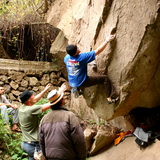 There are many boulders scattered throughout this area of the ravine, with problems of all difficulties.
