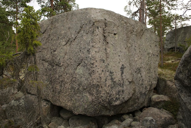 Starta med en hand på en liten lodrät list till vänster och en hand på en sloper till höger. Bägge startgreppen sitter ungefär i axelhöjd om du tänker att du står på de nedersta stenarna som ligger på marken.