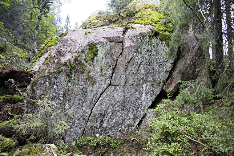 Sitstart, følg sprekken opp og topp ut enkleste vei opp.