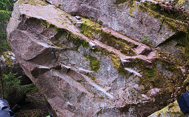 Ett ensamstående block med klättring som passar perfekt för en dagssesh. Stabil stenkvalitet. Parkering väldigt nära bloc...