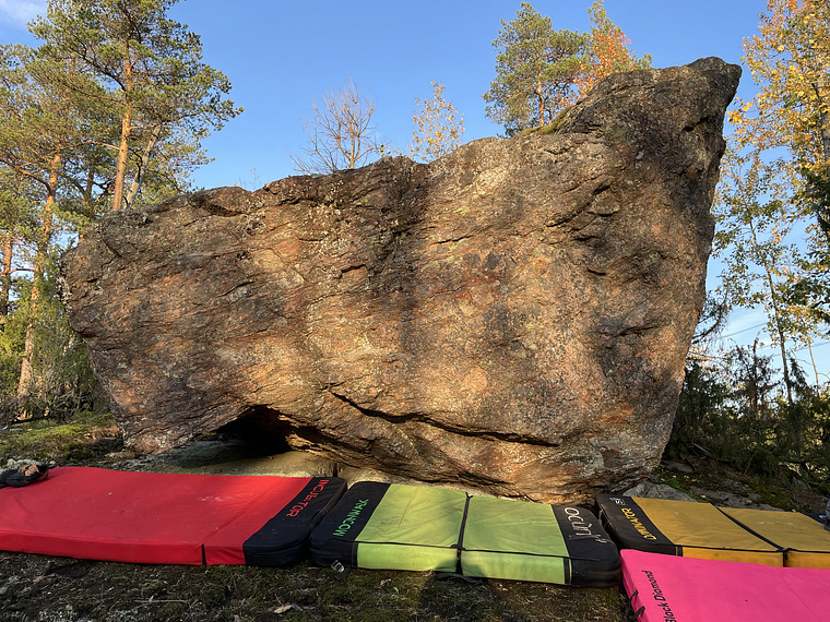 Start from Pikkujätti ledge, traverse left to the start of Tö träverse route.