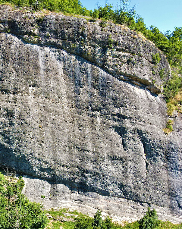 Some pockets on thi vertical line that goes on the left of a small crack, then straight until the end. Rebolted by A. Motta in 2003