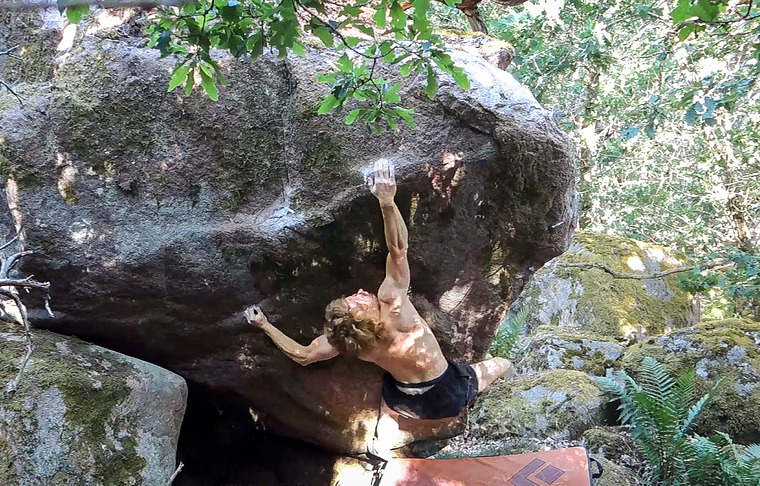 ⛰ The blocs are mostly small to medium in size, scattered across the forest, with a few larger ones tucked away. The rock is of a beautiful reddish character — solid, textured, and great to climb on. While the number of established routes is still limited, the potential is obvious, and a handful of harder test pieces are already in place. The approach is a bit longer, and the blocs are spread out, but the trails are gentle and scenic, winding through calm, open woodland. It’s the kind of place where the approach is part of the enjoyment.