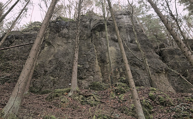 The other sectors are located across the main road. Go back to the street and follow this one towards Pottenstein (left) for about 50 meter and cross the street to get on to the hiking path. Go left, parallel to the street towards Pottenstein and you will pass the sectors "Weidenerwand" and Tockauerwand. Turn right towards Tüchersfeld and follow the hiking path to get to the sectors "Erinnerungswand", "Püttlachkamin", "Teufelskrallentuem", "FRankenjoggerturm", "Piazwand" and "Püttlacher Wand".
