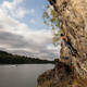 Take Route 222 towards Värmdö. Turn off towards Ingarö and follow Ingarövägen about 1.5 km. Then turn right onto Beatelundsvägen (sign Beatelund). Follow the road for 2.7 kilometers and park at Storängsudd Nature Reserve. Walk back about 900 meters along Beatelundsvägen to a sharp left curve and a meeting place. Go through a gate (with a sign private), follow some indistinct paths up the mountain, and keep leftward up the hill if you want to locate the anchor and rig some toprope above Sidoväggen, or continue around the crag if you want to get there by foot. If you want to visit Svaväggen, follow the path more to the right. The walk doesn't take more than five minutes. Parking is not allowed along the road where you enter the forest through the little gate.