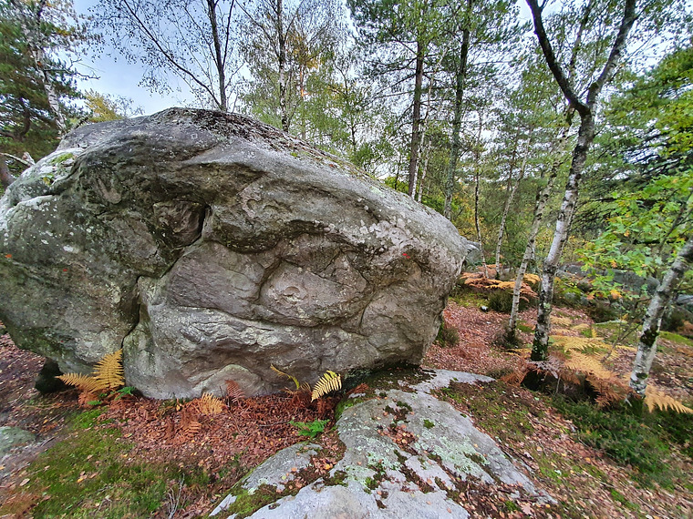 Red 32. It continues on the next boulder. Drawn in as "Économie de Transfert part 2"