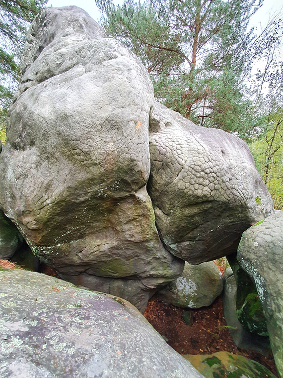 Training boulder. Sit start under black 39, traverse right until Kanaky (just right of Respect pour le Faisan, traverse back and finish with the Crack Chamade where you started from.