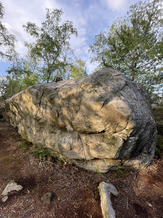 As the name suggests crouch start on the left at the corner/arete and traverse right to the start of Zone de Silence and finish slightly right of the arete (right of virtual D 25)