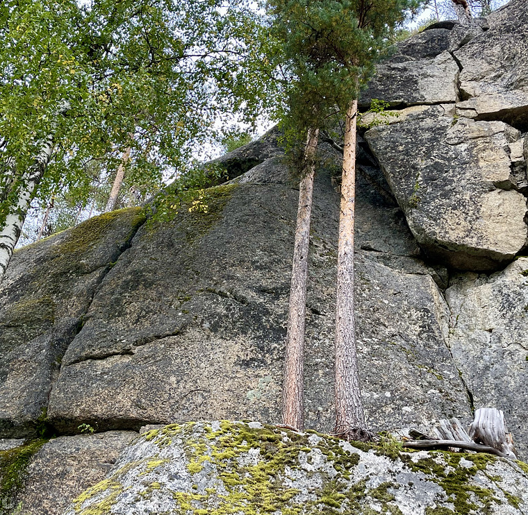Leden börjar med ett markant hörn. Följ det upp till en träng kamin. Fortsätt snett åt vänster i en hörn och sprickformation
