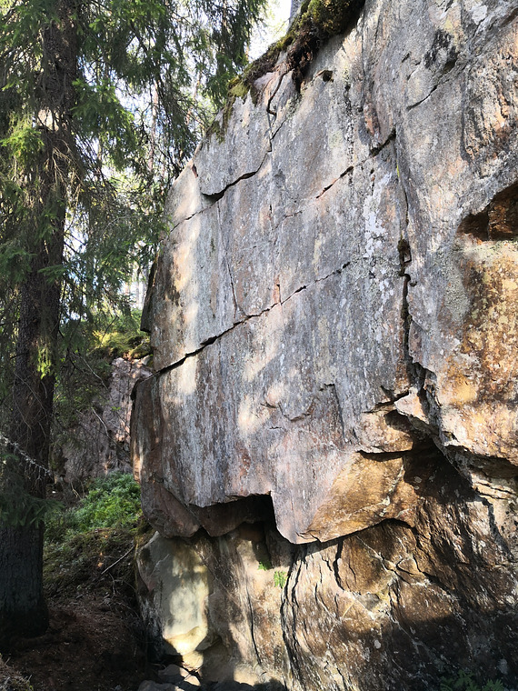 Ståstart i underclings i taket. Rakt upp, toppa till vänster. Akta blocket ovanför andra tvärsprickan.