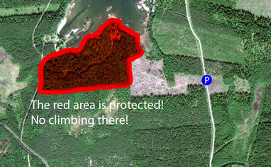 Luonnonsuojelualueella kiipeilykielto (400 vuotta vanha metsä), katso kuva toposta. Climbing is forbidden at the nature conservation area, check picture from topo. Read more