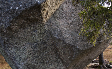 Ett stort block med mycket överhäng, ligger nästan i en mosse så det är väldigt blött på marken på vissa sidor. Det är ont om grepp, och de som finns är oftast crimpiga flak som känns som att de kommer lossna vid belastning.