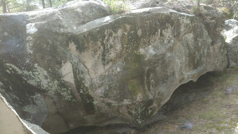 Start in the roof (low). Go left on the wall without the top holds of the boulder.