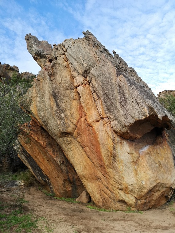 A little bit of a morpho start. Stand start left on the side crimp and right on the sloppy pinch. Powerful move to the jug then follow the side jugs with bad footholds and mantle on the right to top out the boulder.