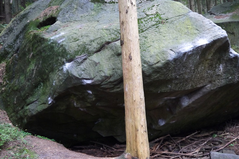 Autor: M. Stráník 2011 SD, z bočáku a lišty mírně doleva n.v. Lepší je si vzít pár spotů na tento boulder, silovka.