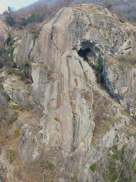 The line start on vertical wall, then little roof and slab until the first pitch. Materials you need: 2 half ropes of 60 m, 12 quickdraws. To get down from the line you can take 3 rappels.