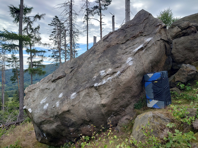 Druhý boulder zleva, start SD a přímo nahoru.