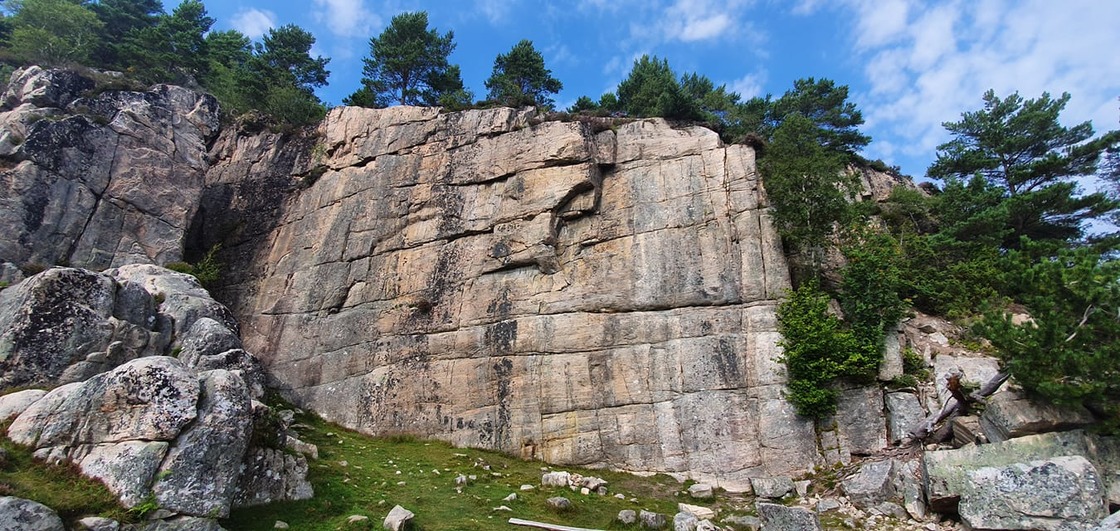 Bremsneshatten is a mountain east of Averøy. The rock contains a wide range of sports and traditional routes. There is one of the few Norwegian caves 80m long. The lower sectors are very close to each other, and below them is a large meadow through which a hiking trail passes. The sector "storveggen" lies about 200m further and contains only traditional routes.