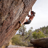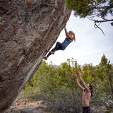 Granite boulders featuring many pockets, crimps, and an occasional steep roof. There are quite a few very tall problems around so a few pads can be very nice to have.