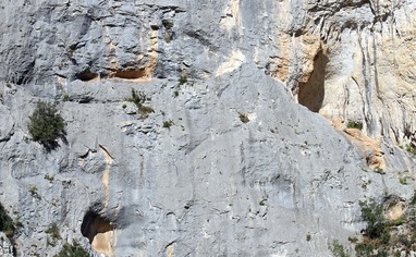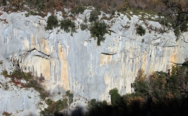 Keep on foot until you reach the bridge over the river Mirna. Switch to the dirt road before the bridge for the crags Befana, Like and Slap, and after the bridge for the crags Đoser and Pengari. Walk until you reach the road widening at the beginning of the canyon.To approach the left canyon, with the crags Befana and Slap, follow a nice marked trail. For Like sector you need to cross the stream just before path is going uphill to Befana sector.