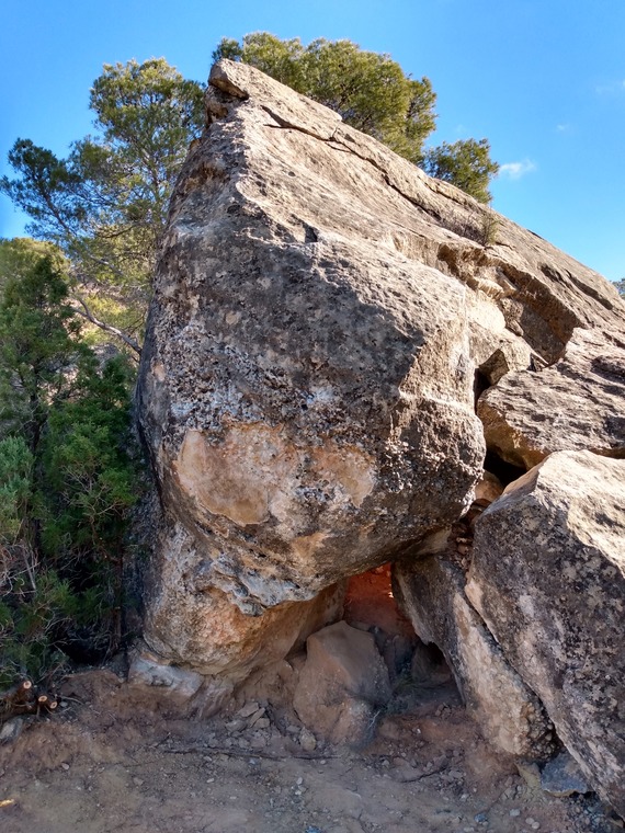 Sitstart with big sidepull low on the right arête and one of the good holds down low on the left, then straight up over the bulge. The exit-slab is easy but requires careful and gentle climbing - no hard pulling on the flakes!