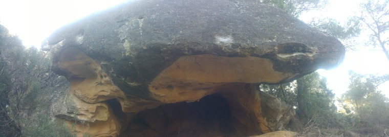 Sitstart in the back of the cave on juggy rail. Without the bottom boulder on the left bottom side of the cave.
