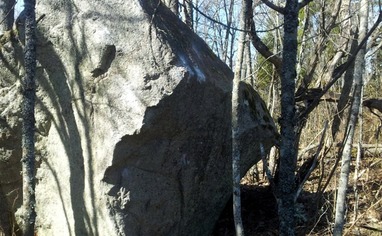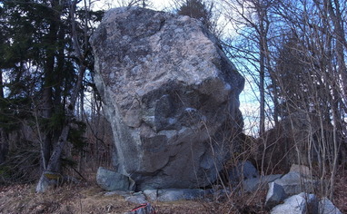 Ensamt högt block precis vid vägen i närheten av Balingsta.